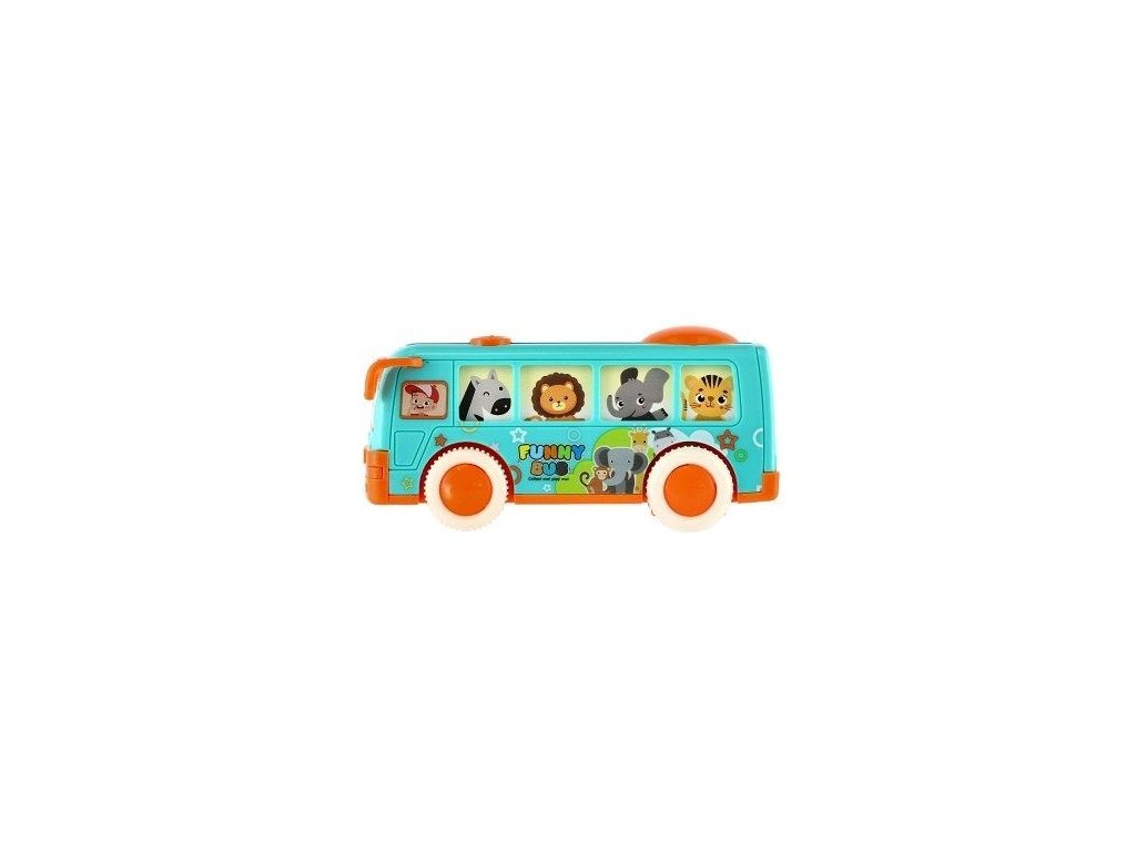 Krásny autobus pre najmenších, ktorý vám umožní využiť na výlet. Oknami autobusu vidím všetkých cestujúcich, ktoré ztvárňujú zvieratka.Cestuje napríklad zebra, lev alebo žirafa. Autobus jazdí na sotrvačník. Veľkosť autobusu je 12 cm.