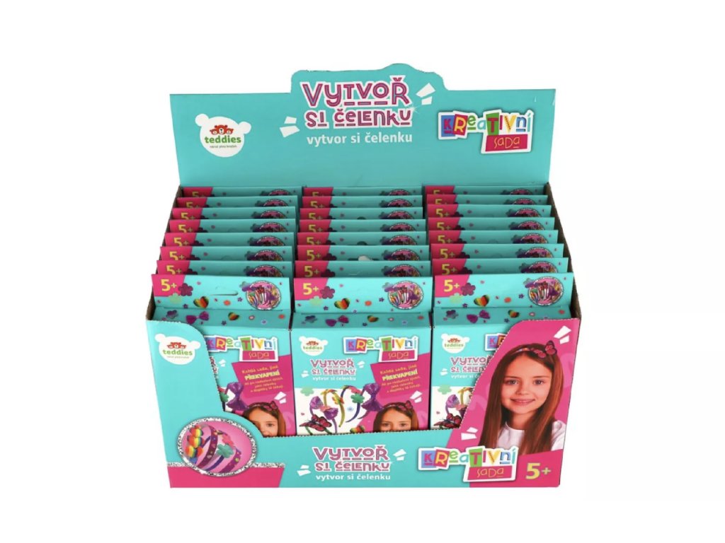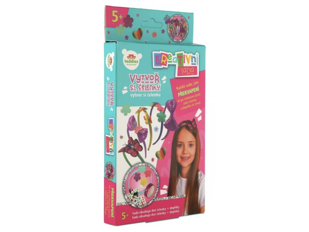 Súčasťou balenia sú 2 základné čelenky a množstvo farebných doplnkov – stužky, kvietky, korálky, ozdobné kamienky či penové dekorácie, s ktorými si môžu deti vyčarovať jedinečné doplnky do vlasov.