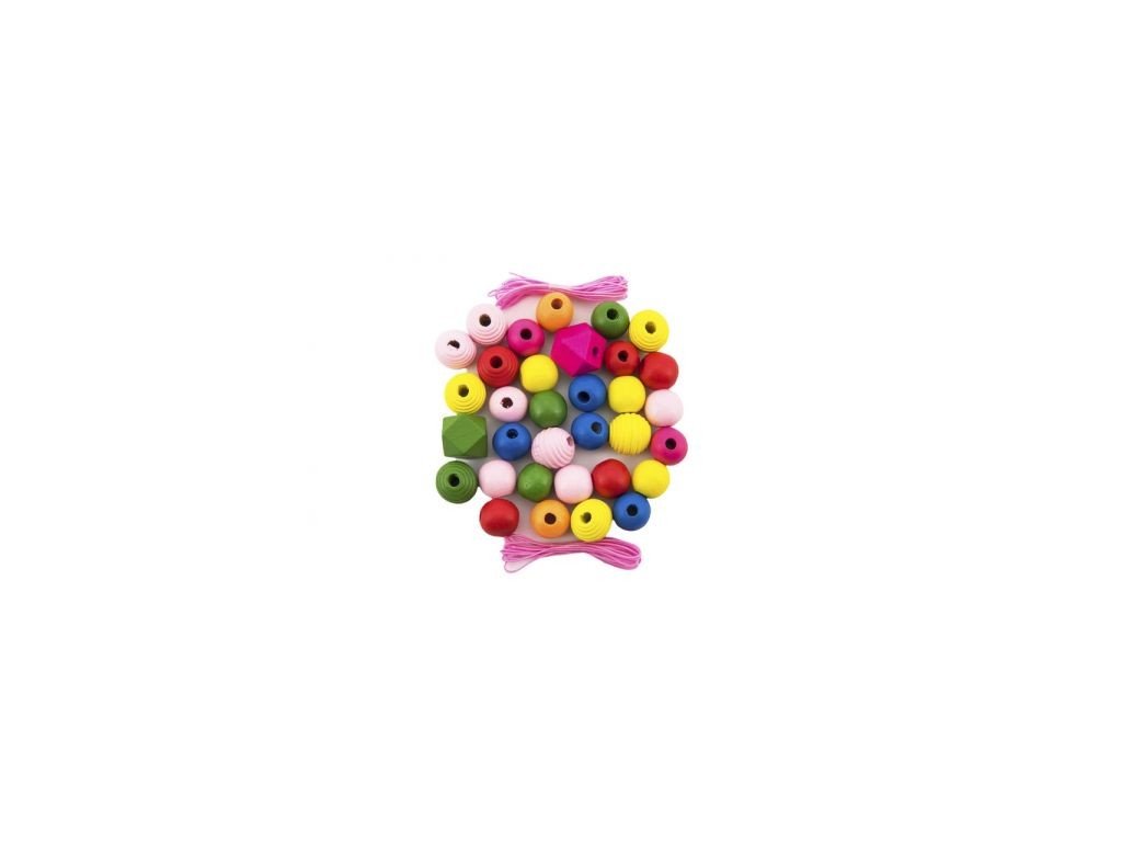 Detské farebné korálky pre malé parádnice a nielen pre nich. V sade nájdete rôzne druhy a tvary korálikov, ktoré majú pestré a veselé farby. Súčasťou sú gumičky, na ktoré si deti môžu navliekať korálky podľa svojej fantázie, náramky a retiazky sú potom rozťahovacia. Vzniknú tak jedinečné módne doplnky. Plastová dóza obsahuje 54 ks korálok. Drevené maxi korálky sú vhodnou hračkou pre rozvoj detskej motoriky, trpezlivosti i fantázie.