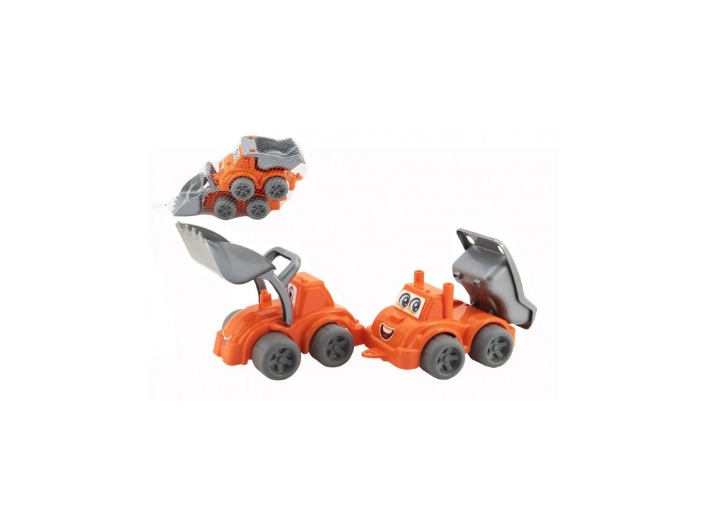 Stavebné stroje potešia každého malého stavbára. Súprava obsahuje auto nakladač a auto s korbou.